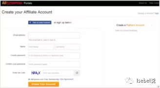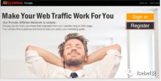 2. 访问主页链接 :http://portals.aliexpress.com ,并单击进入“注册”界面。
