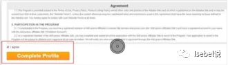 5. 填完了之后需要查看相应的会员几乎发布者协议和计划条款,选择“同意”并继续。单击compelete profile (完成配置文件)就可以完成注册了。