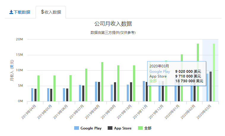 从数据上来看,博乐科技此次收入增长的时间节点为 2020 年 1 月,而随着海外,尤其是美国疫情长时间得不到控制,线上娱乐类手游产品的下载量和收入迎来增长在很大程度上是必然的。