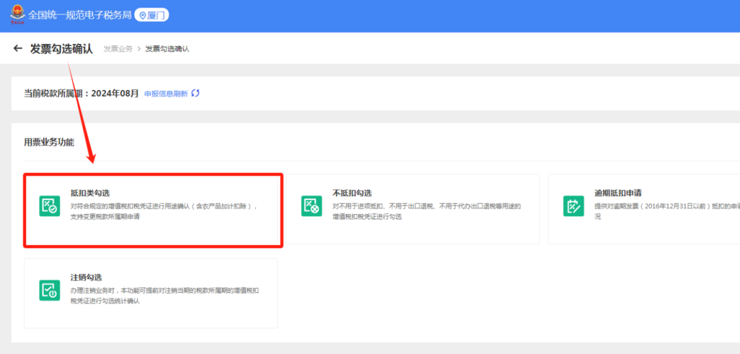 出口取得的进项发票办理抵扣勾选。