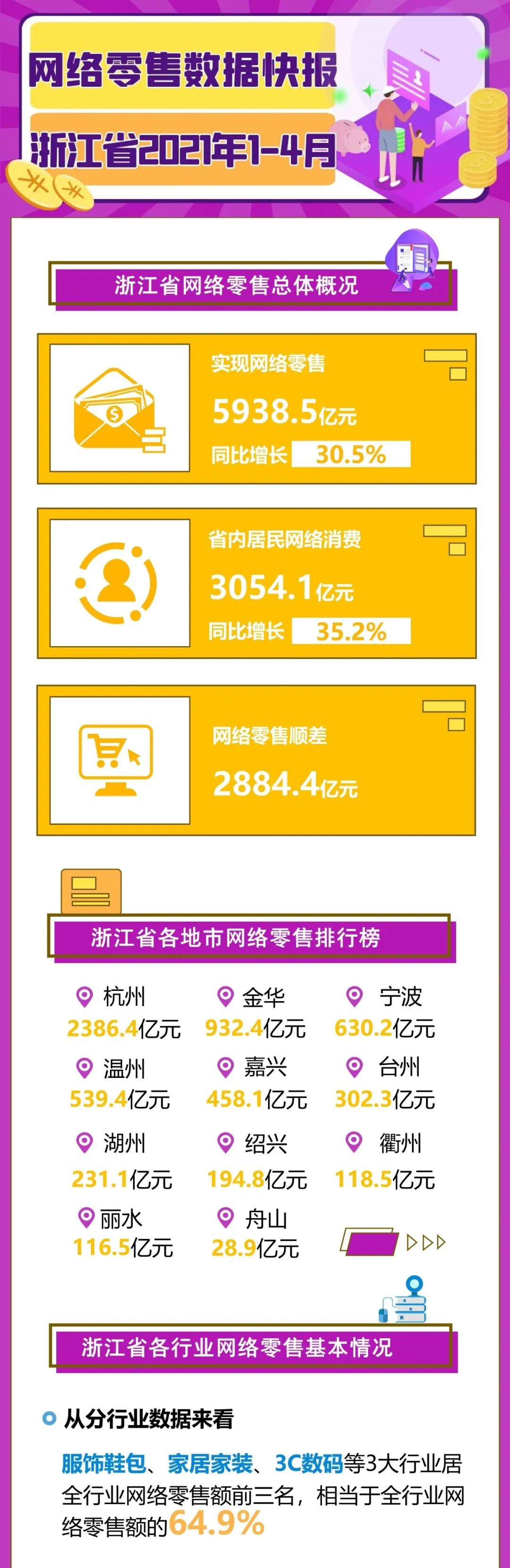 数据报告 | 1-4月,浙江省网络零售数据同比增长30.5%