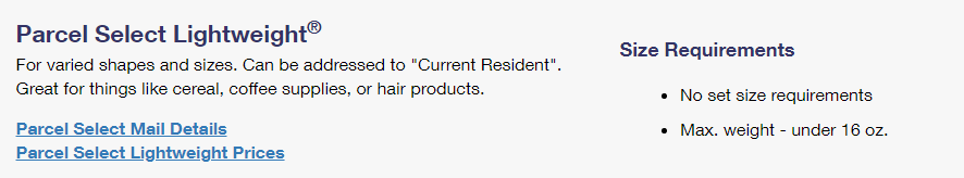 如上图所示,USPS官方列举了一些比较适合的品类:谷类食品、咖啡供应品或美发产品。