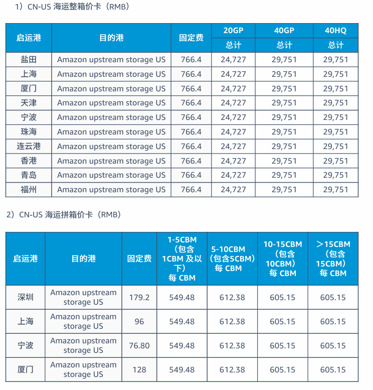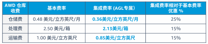 集成费率:适用于卖家使用 AGL 或合作承运人计划,将货物发往 AWD 仓库。