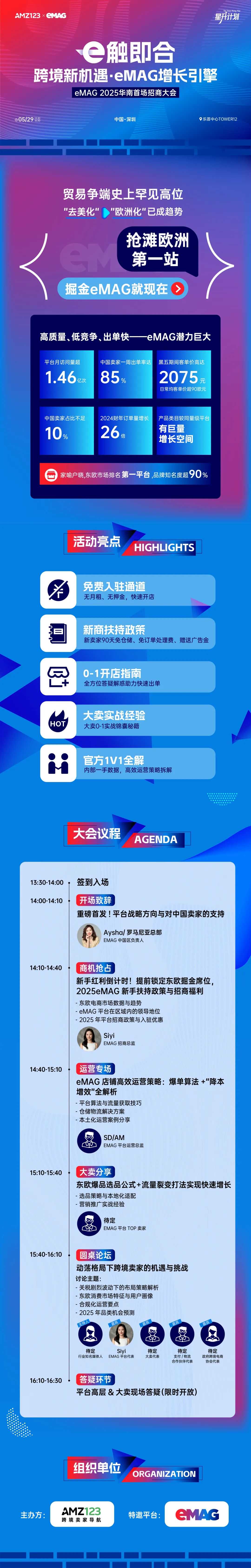 为了帮助卖家把握新机遇,AMZ123携手eMAG将于5月29日在中国深圳乐荟中心TOWER12举办“eMAG 2025华南首场招商大会”,旨在为卖家揭示跨境电商的新机遇和增长引擎。