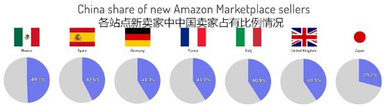 亚马逊的5个欧洲站点、日本站和墨西哥站受当地法律法规要求,需披露卖家商业信息。根据披露的商业信息,这7个站点产生了一半以上的新卖家。