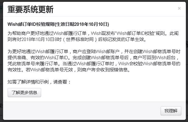 【wish公告】Wish邮订单ID校验规则(生效日期2018年10月10日)