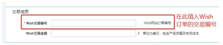 以下为创建Wishpost物流运单的操作示例图,关于填入交易编号的要求;