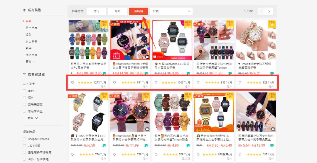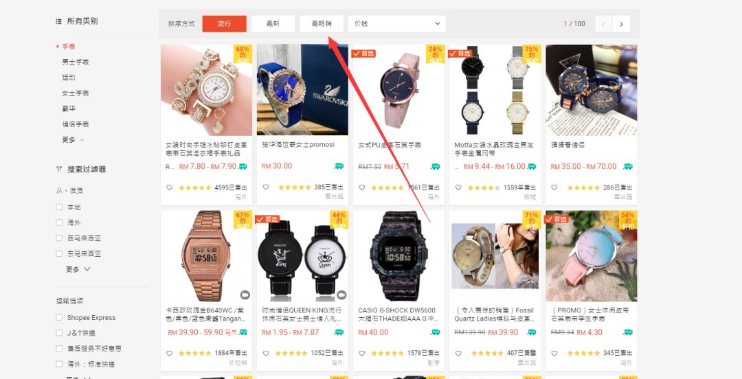 lazada我就不举例了,我也不演示了,只要是前排的产品,哪个不热销?不热销,他会在前排,而且还有一点,lazada和shopee都是东南亚的平台,受众群体是一样的,所以产品都是可以通用的!没错通用的!