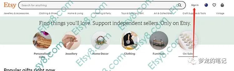 第一步我们要注册一个ETSY的买家账号,这里我们直接选择:“Sign In” 如下图所示: