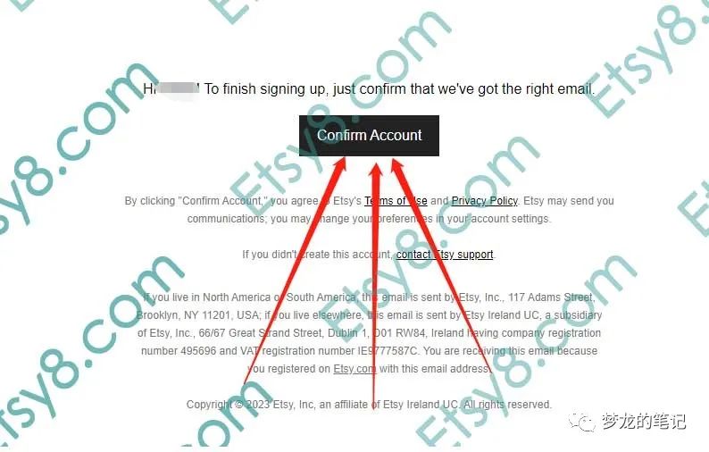 这里,过上5-10分钟,我们的邮箱里面会收到一个封来自ETSY的确认信。