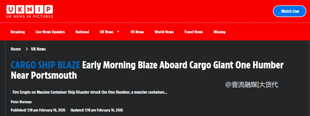 根据英国独立报消息,此次发生火灾的船舶是ONE旗下的集装箱船“One Humber”号轮——该船为MSC、HMM、阳明等多家船公司共舱,且曾挂靠国内多个港口!
