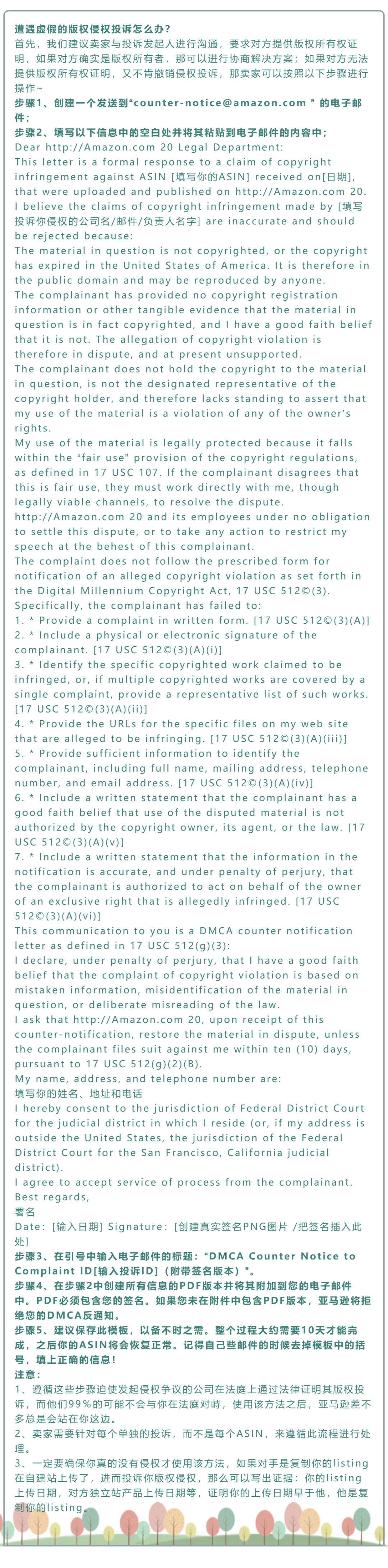 亚马逊版权侵权恶意投诉DMCA反通知模板