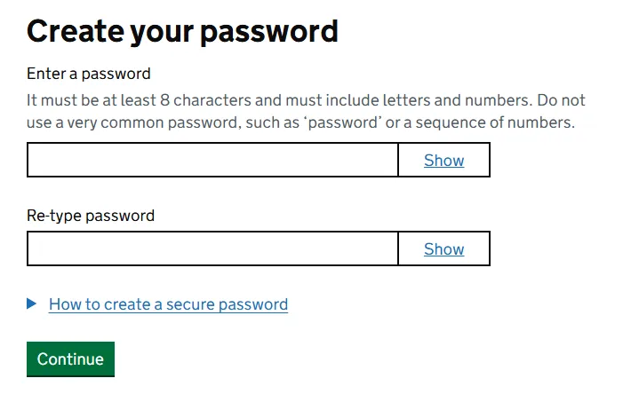 5、点击绿色框“Create your GOV.UK One Login(准备创建 GOV.UK 账户)”。