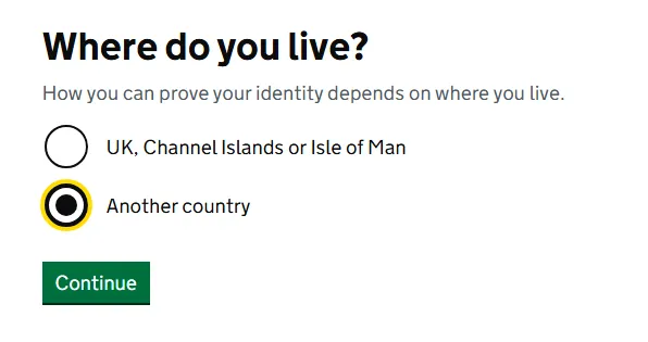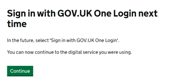 4、点击绿色框“Go to GOV.UK One Login(前往 GOV.UK 登录)”。