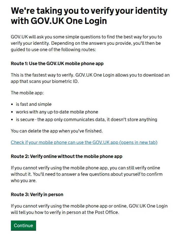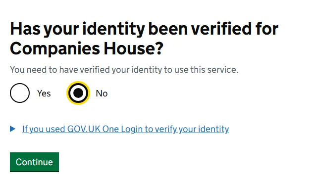 2、点击链接https://www.gov.uk/guidance/verify-your-identity-for-companies-house进入验证页面。