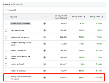 近日,Jungle Scout发布了亚马逊美国第二季度热销产品预测,其中便有不少夏季产品,例如泳衣。数据显示tummy control swimsuits for women(女式贴身泳衣)月搜索量高达10万次,热度飙升1560%。