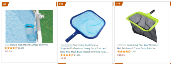 和泳池相关的热销产品还有撇渣器,有多款产品冲上热销榜,排名和留评数都相当可观。