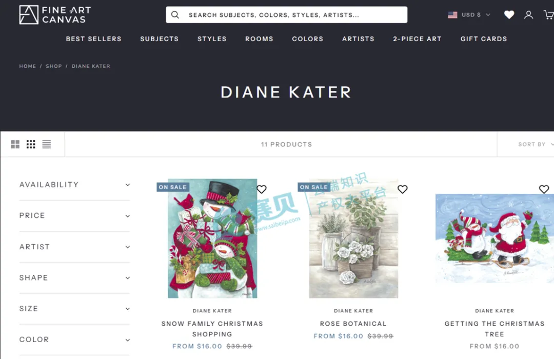 【26-cv-3495】Diane Kater圣诞插画版权维权TRO启动,涉及礼品、贺卡类产品,速查下架!本案涉及9张作品!