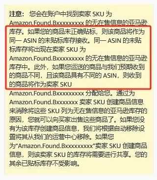而且,如果卖家的商品与亚马逊预期接收的不同,且该商品具有不同的ASIN,则收到的商品就会分配给Amazon.Found.BXXXX的SKU。