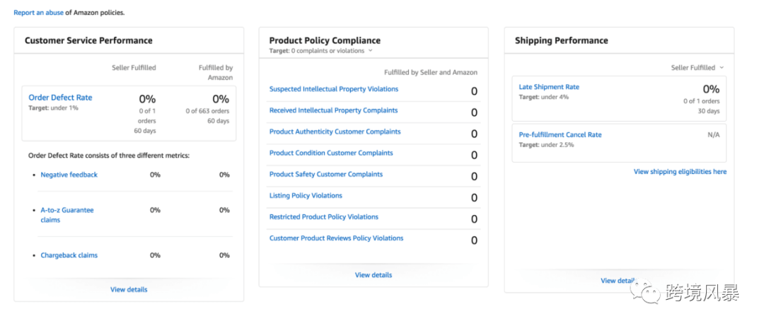 在你的卖家中心帐户下的Performance>Account Health,你会发现这个概述: