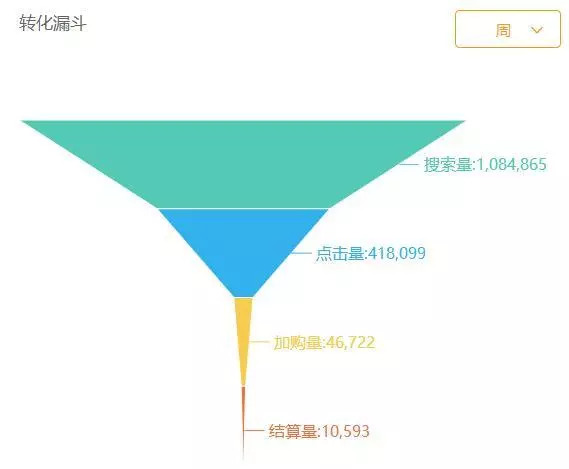 2、独有的转化漏斗,方便卖家朋友通过反推法计算出该关键词所需的搜索量、点击量。