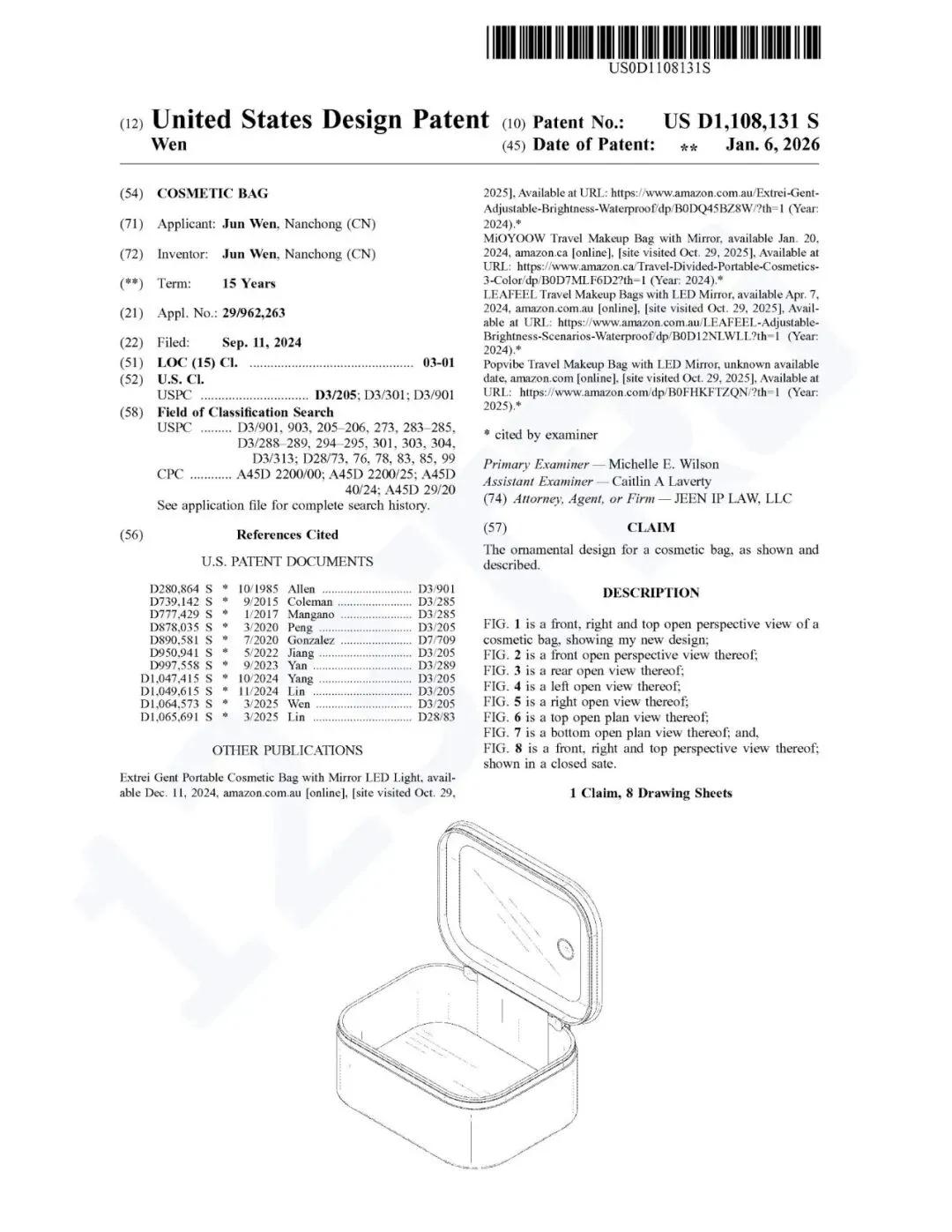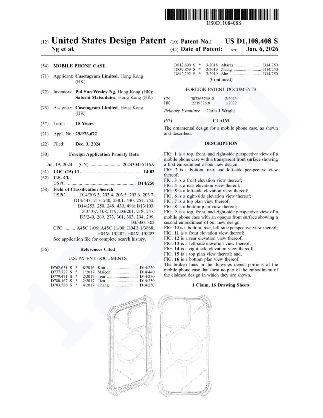 这条专利有点诡异,它的外形基本上是用虚线,但外观专利的保护范围通常是实线部分