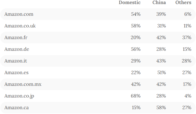 其实,在当初开始Prime Day日期基本确定后,来自中国的卖家最关心的是能否在Prime Day上大展拳脚,赚个盆满钵满。 根据Marketplace Pulse最新数据显示,亚马逊的卖家大部分来自美国国内,约占54%;第二位则是中国,约占39%;而其他国家加起来只占一小部分,约6%。 中国卖家不仅在美国的亚马逊市场占据很大一块份额,而且在亚马逊其它国家的市场也占据相当大的份额。下图是亚马逊在其它国家中本土卖家和中国卖家的占比情况👇 由上图可知,除了本土卖家外,中国卖家雄霸该国的外国卖家份额。在加拿大、法国、西班牙、意大利这些国家中,中国卖家的市场份额甚至超越本土卖家。 除了中国卖家,其它国家的卖家在亚马逊的跨境销售主要集中在少数几个国家,并不是那么的”国际化“。 比如欧洲卖家只占美国亚马逊市场的一小部分;而美国卖家在欧洲市场的占比也很少。日本亚马逊的大部分销售额来自本土卖家。 但无一例外的是,中国卖家在所有国家的亚马逊销售额中占比都很大! 最后小编奉上这张爆单符,祝愿各位卖家都能顺利爆单,天天赚钱!