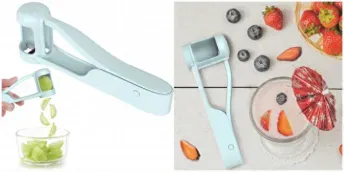 维权产品是一款可安全快速切割葡萄等小型水果的工具,只需用拇指按下,带凹槽的刀片就会将水果分开,便捷高效,特别适合有儿童和老人的家庭。