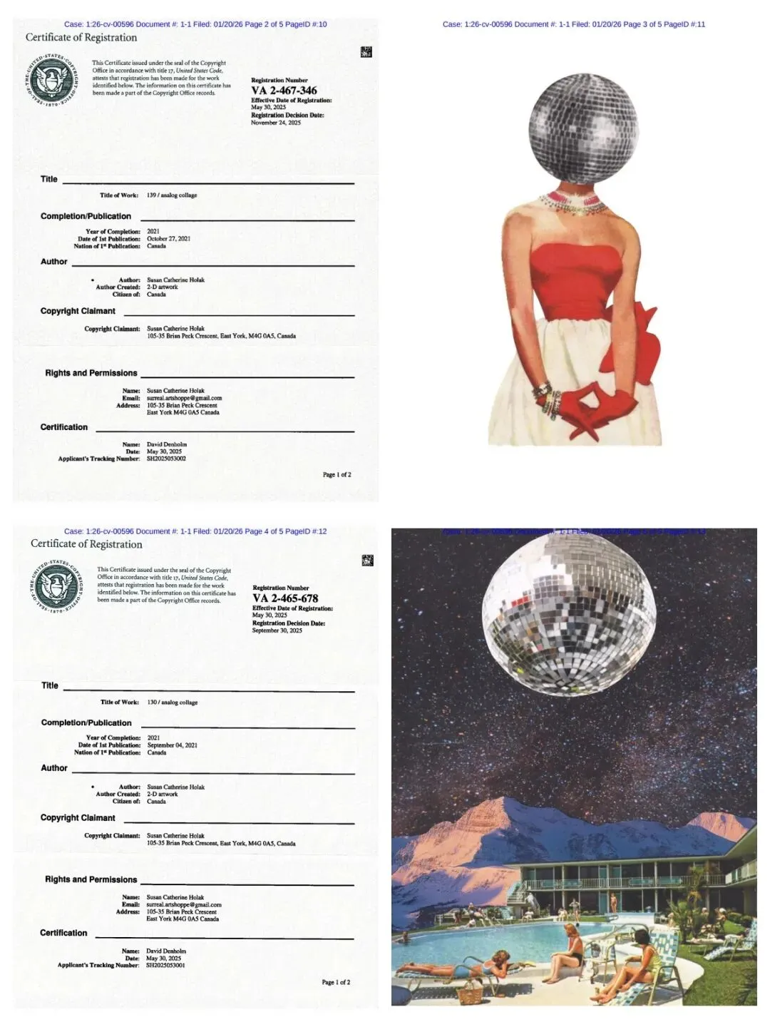 2020年,Susan Catherine Holak创立了surreal. Art Shoppe,将其作品销往全球,还曾登上Candyfloss等杂志,以及在Bravo电视节目中亮相。Susan Catherine Holak从不提前构思创作,而是在翻阅旧书杂志、收集碎片并重组的过程,迸发灵感并即兴创作。因此,其作品无固定风格,每幅都是当日心境与素材的独特对话,且不设标题,鼓励观者自行探索故事,感受无限可能。