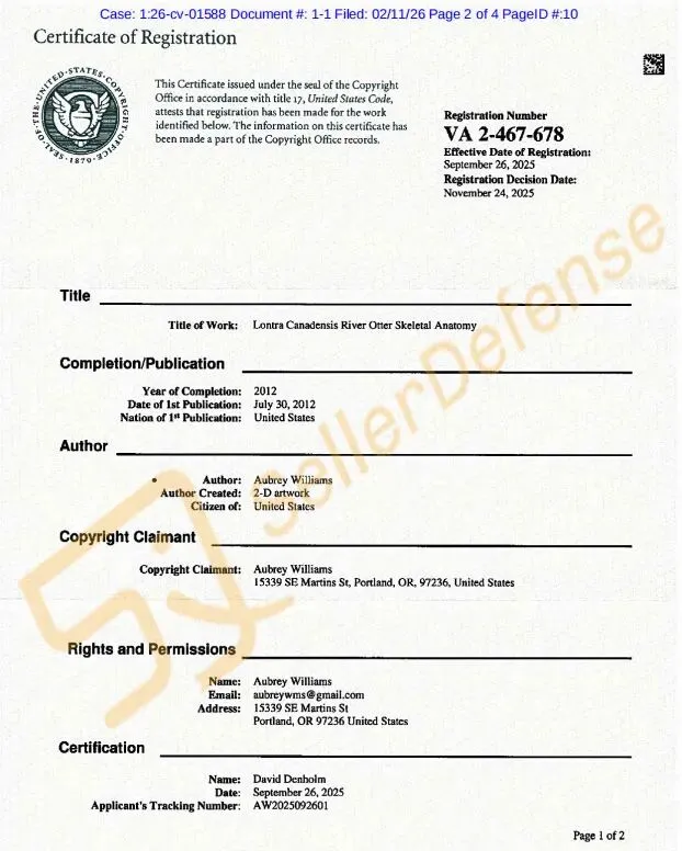 原告 Aubrey Williams 是一位拥有十余年经验的专业插画师和概念艺术家。原告拥有插画专业的艺术学士学位,并曾为多个商业和娱乐项目创作插画和概念艺术。