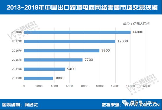 据网经社-电子商务研究中心监测数据显示,2018年中国出口跨境电商网络零售市场交易规模为1.4万亿元,同比增长16.6%。