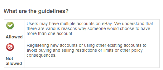 开设多个账号有很多正规理由,比如为每一种产品创建不同的账号。但eBay不允许卖家用新账号来躲避账号被封的事。