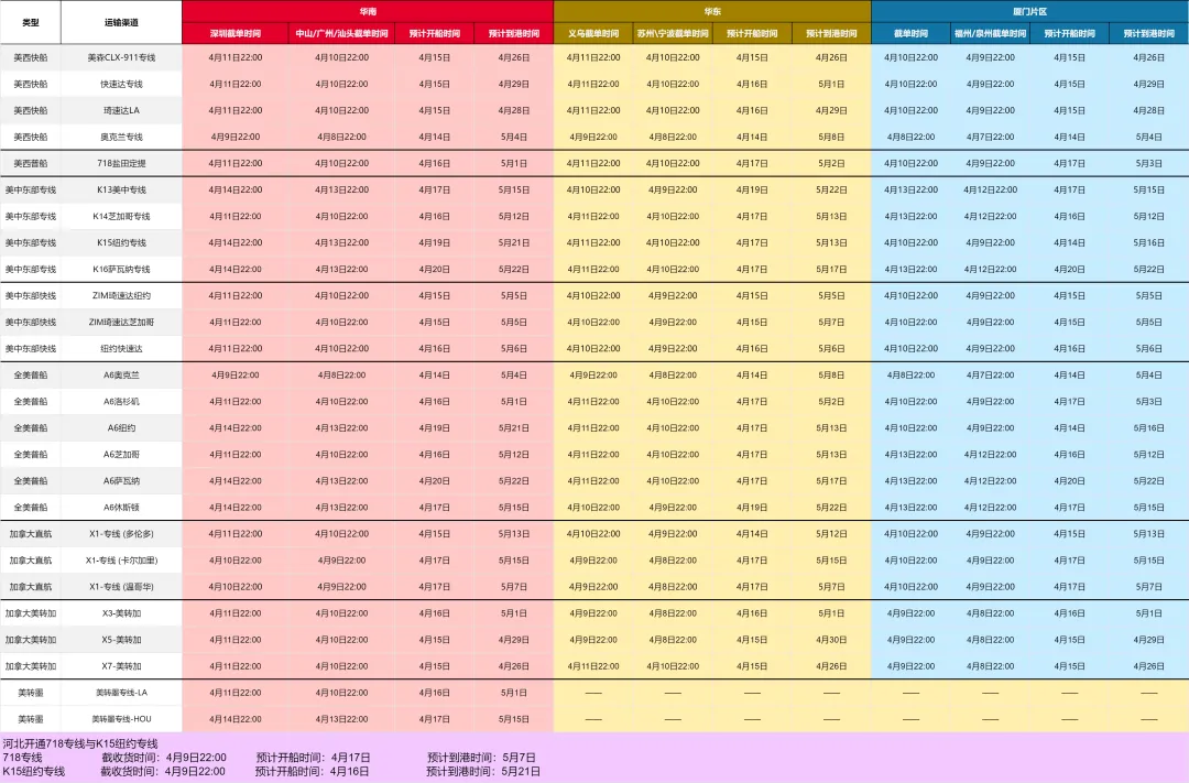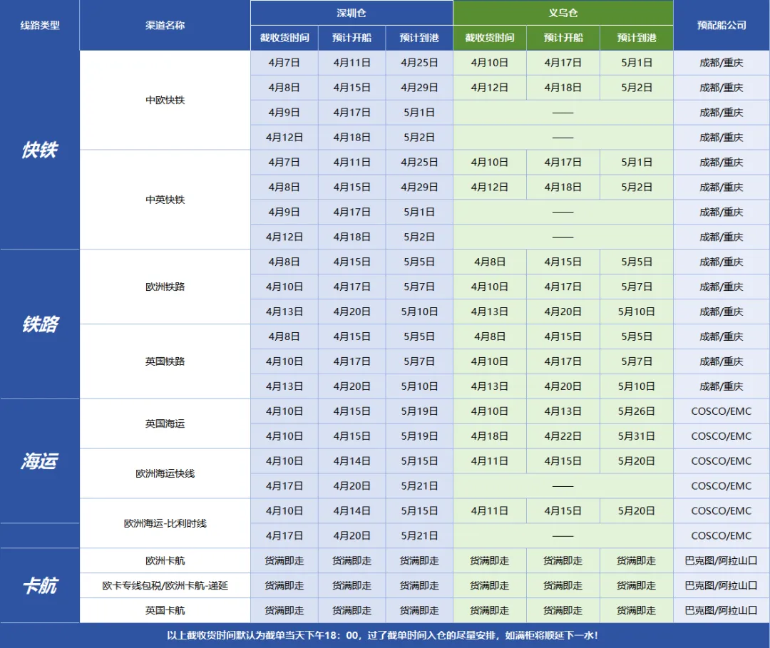 凯琦渠道 | 4月第1周发货时效 &4月第2周装柜计划