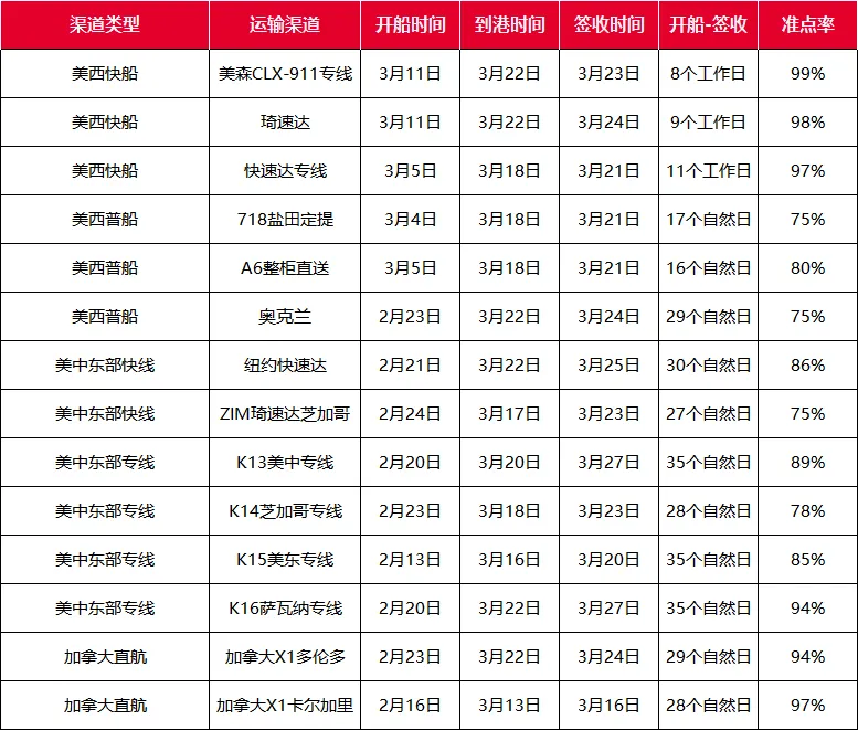 · 欧美加渠道本周航期 ·
