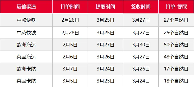 · 欧美加渠道上周时效 ·