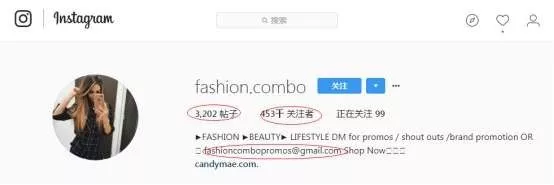 2、找没有带蓝√标志的账号。没有蓝√账号可以分为两种,一是自己在做店铺的国外商人;二是可合作的网红。 一般有意向合作的红人都会留下联系方式(例如Gmail邮箱)。你可以选择发邮件或者关注他,点击“发信息”私信他。但是发私信有个弊端,如果双方没有相互关注,私信就不会完全展示出来,不确定红人能不能看到。