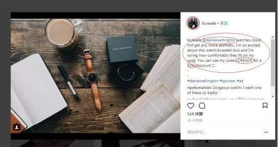以丹尼尔惠灵顿手表的帖子为例子,大家注意一下圈起来的内容。