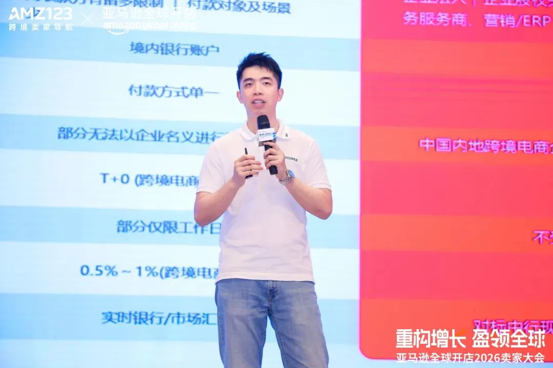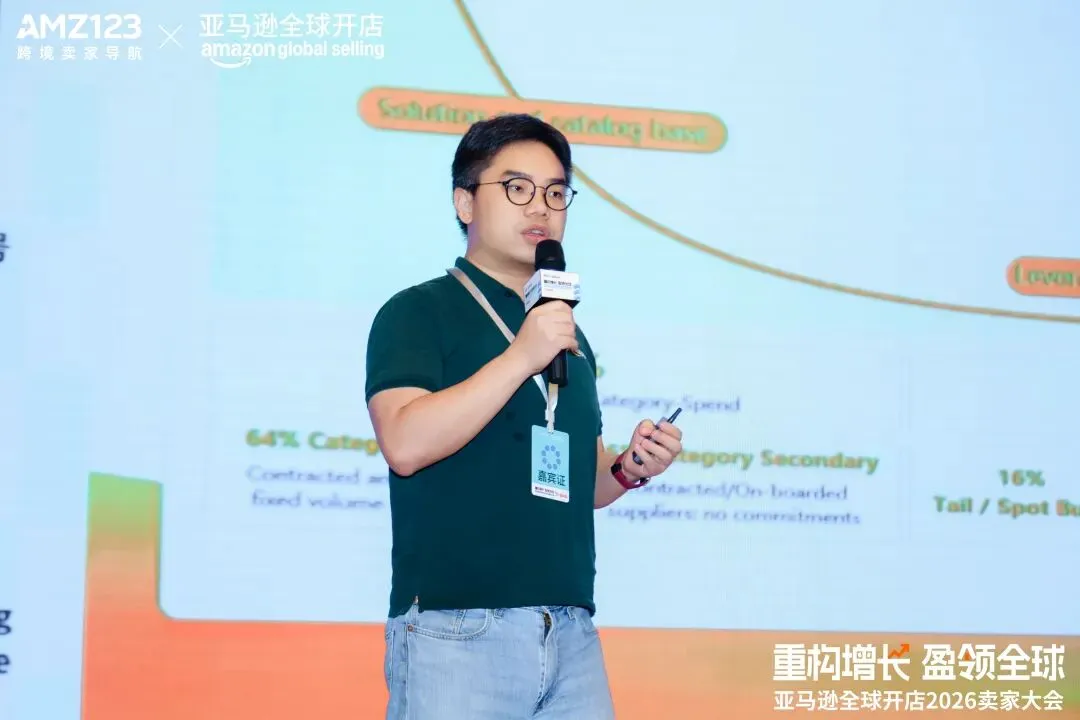 会议伊始,亚马逊全球开店区域拓展团队的高级拓展经理Joseph Yang详细介绍了2026年平台新政的核心内容,包括对跨境电商的税收优惠、物流支持以及市场准入等方面的新规定,并强调,这些政策变化对卖家来说意味着新的市场机会和增长潜力。接着,他深入分析了新政如何释放新的市场空间,比如通过降低关税和简化海关程序,使得卖家能够更容易地进入新市场。