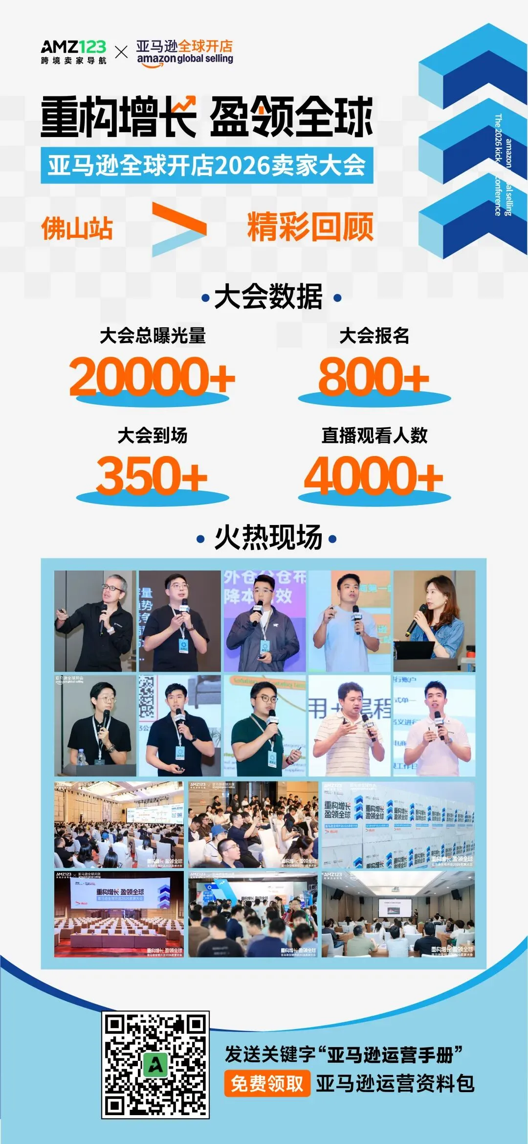 为帮助跨境卖家规划新一年的出海布局,10月14日,AMZ123携手亚马逊全球开店在佛山成功举办了「亚马逊全球开店2026卖家大会」,聚焦供应链重塑、AI技术降本与品牌价值突围等热点话题,为参会卖家找准出海方向,抓住增长先机。