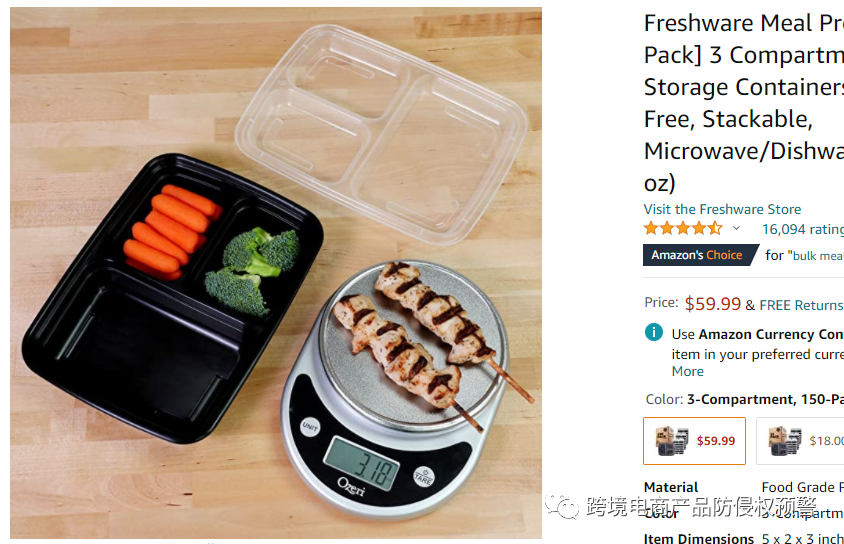 这款餐盒,在亚马逊美国站,它带有Amazon's Choice标志,现有留评数16094: