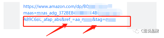这个链接除了有亚马逊正常的ASIN外,可以看到后面还有ref,tag一串字符其实就类似是你设置的归因追踪代码了。