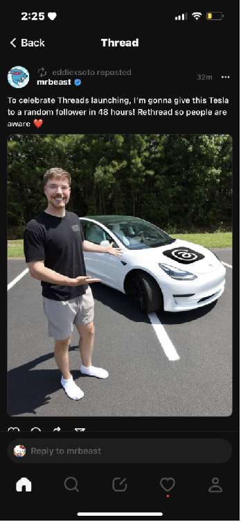 看起来,品牌和内容创作者是认同的!其中一些率先登陆这个平台的创作者包括Mr. Beast(他通过这个平台向一个随机的粉丝赠送了一辆特斯拉车)、Adam Waheed、Ashley Graham、Alan Chikin Chow、Fadlan Halao Thamrin以及Lauren Godwin。