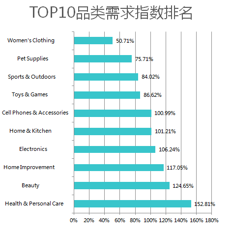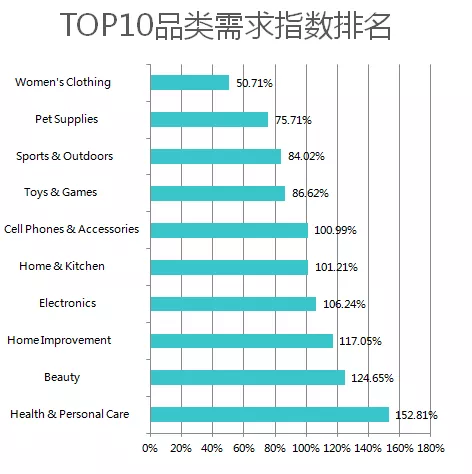 152.81% 124.65% 117.05%# 品类 需求指数 1 Health & Personal Care 2 Beauty 3 Home Improvement