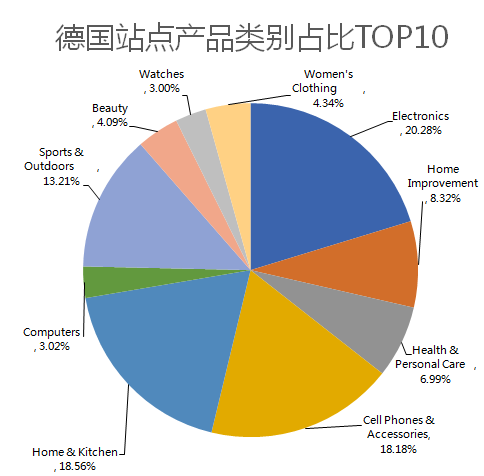 偏重工业及科技追求的德国市场,电子产品的稀缺度仍然十分之高,家居装饰似乎也是细节控德国民众的挚爱,个人护理的需求位列第三,手机配件、厨房用品的需求紧随其后。
