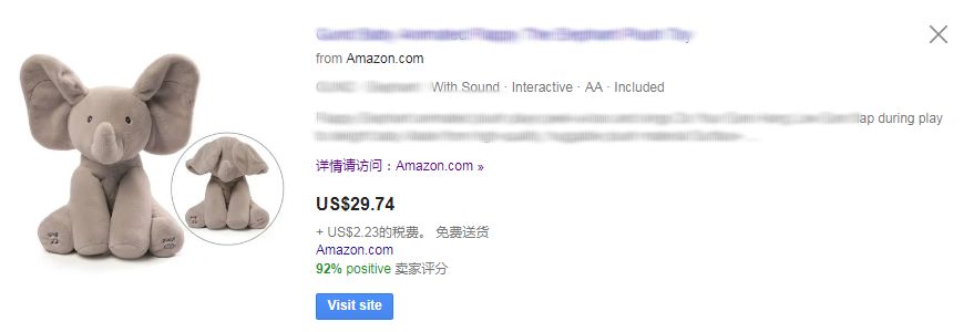 该公司卖的最火的是GUND Peek-A-Boo 产品系列,此产品系列有一个叫 Flappy the Elephant 的大象毛绒玩具,当按下脚上的一个按钮时,大象的2个大耳朵可以把脸遮盖起来。在平台上搜索,能找到不少侵权产品,连产品商标都一模一样。虽然这次Spin Master告的不是平台卖家,但EPS已经代理了这些品牌,完全有可能在后期告平台卖家,所以卖家最好避让。除了此系列,该品牌旗下的其他产品也应该值得注意,例如Flutterbye Fairy ,Hatchimals等产品。