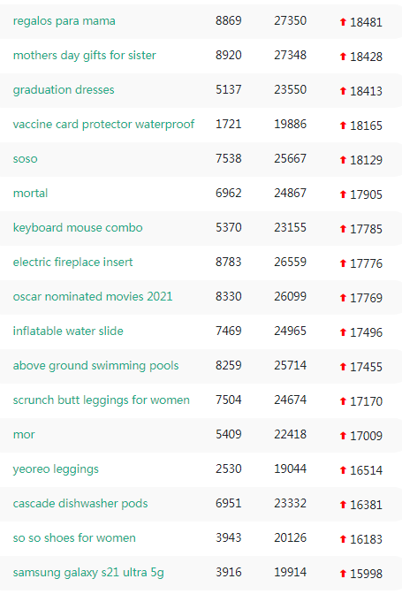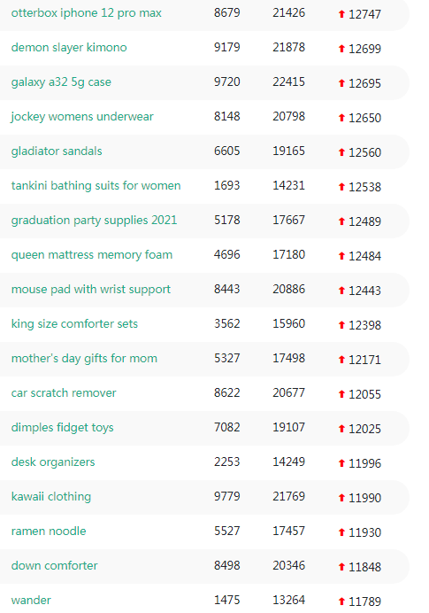 2021年5月5日跨境电商亚马逊选品关键词趋势