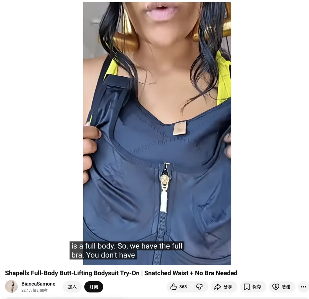 在一则关于“AirSlim™深V连体衣”的评测视频中,她全面演绎了合作的核心模式:从直观的试穿展示到细致的卖点解说。她不仅亲身演示提臀收腰的视觉效果,更贴心讲解如深V设计、内置胸罩、无缝材质乃至方便如厕的拉链设计等细节,将产品功能转化为生动的用户体验。