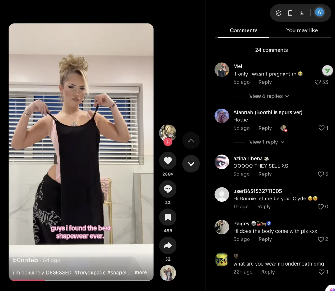 如果说YouTube是展示产品深度与信任的“长客厅”,那么TikTok便是瞬间点燃欲望的“快闪店”。Shapellx与TikTok创作者b0nn1eb的合作,精准地诠释了后者在塑造爆款与驱动即时转化上的独特力量。