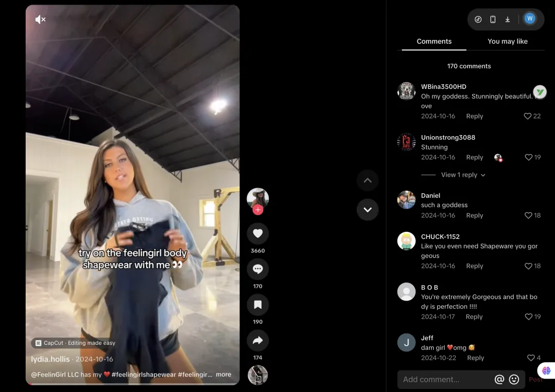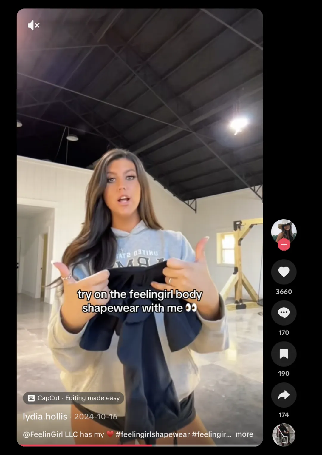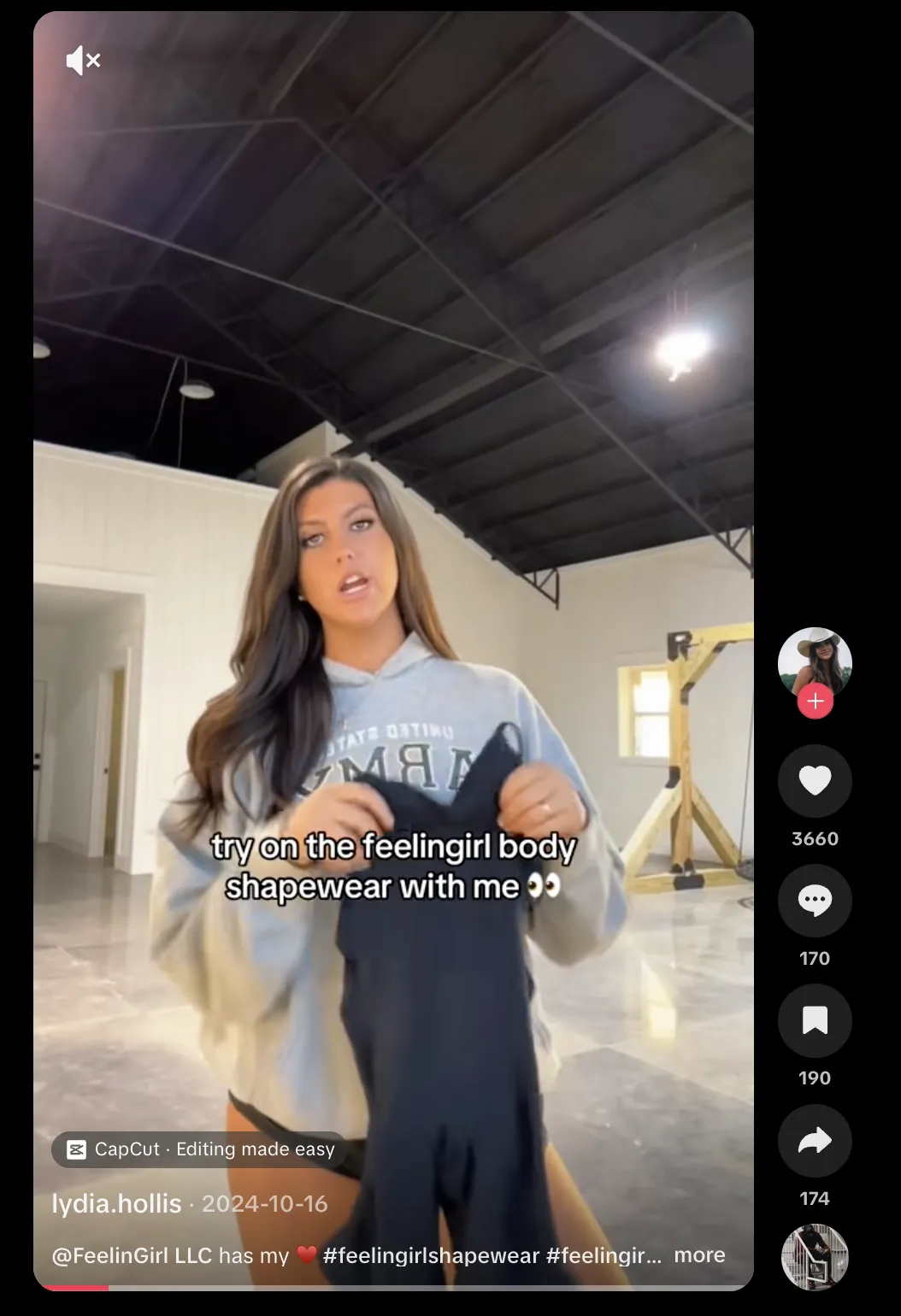 在跨境电商的红人营销中,找到与品牌调性高度契合的达人,是引爆销量的关键。塑身衣品牌FeelinGirl与达人Lydia Hollis的合作,便是一次精准的“人设带货”典范。