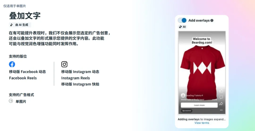 A+ Creative 是 Meta 的创意增强工具,结合平台的进阶能力与生成式 AI,让你的现有素材“自动焕新”: